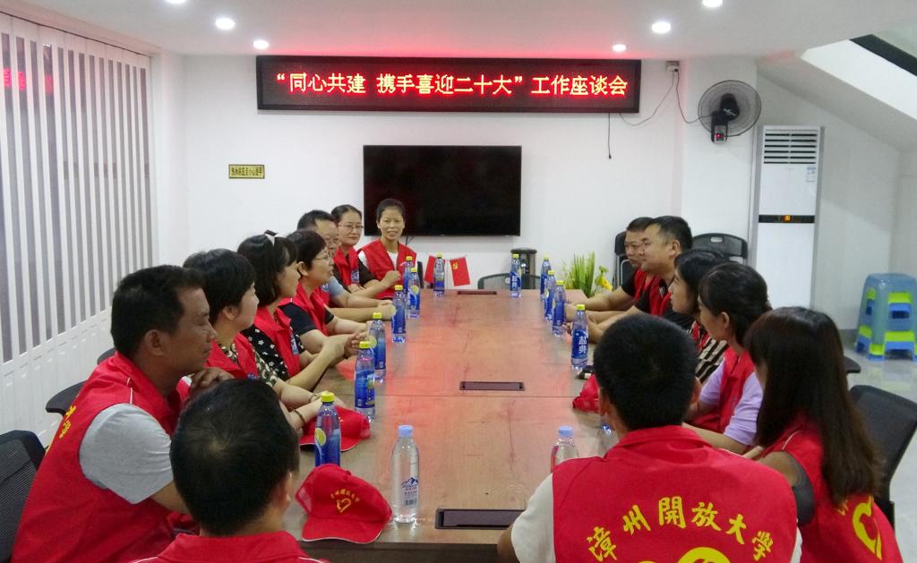 9月29日上午,漳州开放大学工会与行政党支部组织党员志愿者走进北京社区,联合开展主题党日活动。学校党委副书记、工会主席林之枫,行政支部书记、工会副主席黄志军带队,西桥街道组织委员沈文兰、北京社区书记沈晓德参加座谈。