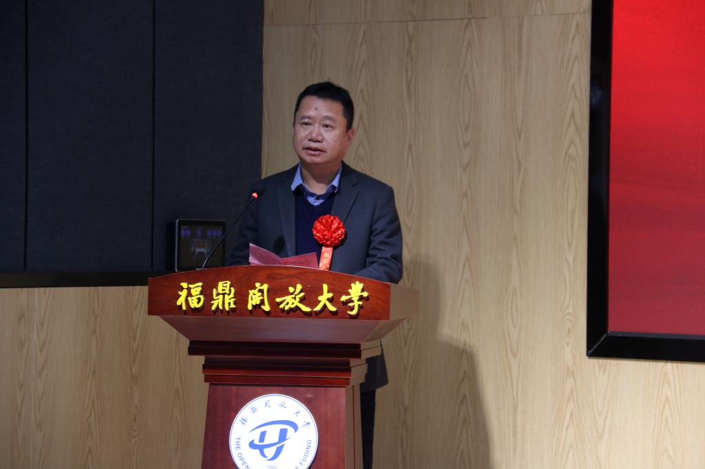 陈晓龙代表福鼎市委、市政府致辞,他表示福建广播电视大学福鼎学院更名为福鼎开放大学,既是对福鼎学院发展成果的肯定,也是福鼎市继续教育和终身教育的标志性成果,更是对办好福鼎市开放教育的鞭策与激励,对创建全民学习和终身学习的学习型社会必将产生深远而有意义的影响。他希望福鼎开放大学立足新起点、履行新职能、抢抓新机遇,在探索我市高等教育、职业教育、继续教育与老年教育深度融合发展的道路上,创新路、出亮点、谋实效、创佳绩。他强调,一要牢记使命,重装出发。要紧盯时代重任,履行好开放大学的职责和使命,搭建福鼎市全民终身学习的立交桥,持续助力我市经济社会高质量发展跨越。二要守正创新,创优提质。要依托两级统筹,四级办学,着力打造四个平台,实现四个转变。要以规范促发展,以服务树品牌,推进优质教学资源共建共享,切实提高办学质量。三要转型升级,办出特色。要充分调动全市教育资源,进一步拓展老年教育、社区教育、社会培训,让教育走向人人皆学、处处能学、时时可学,构建起服务全民终身学习的教育体系。