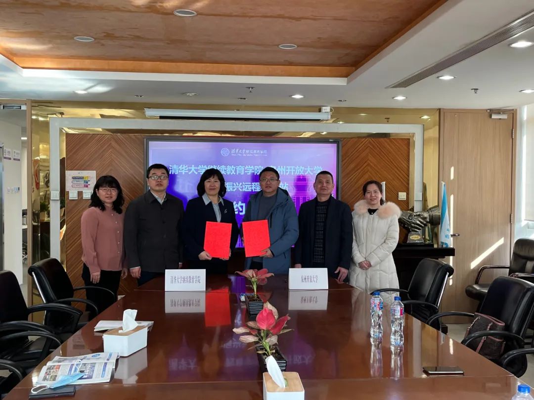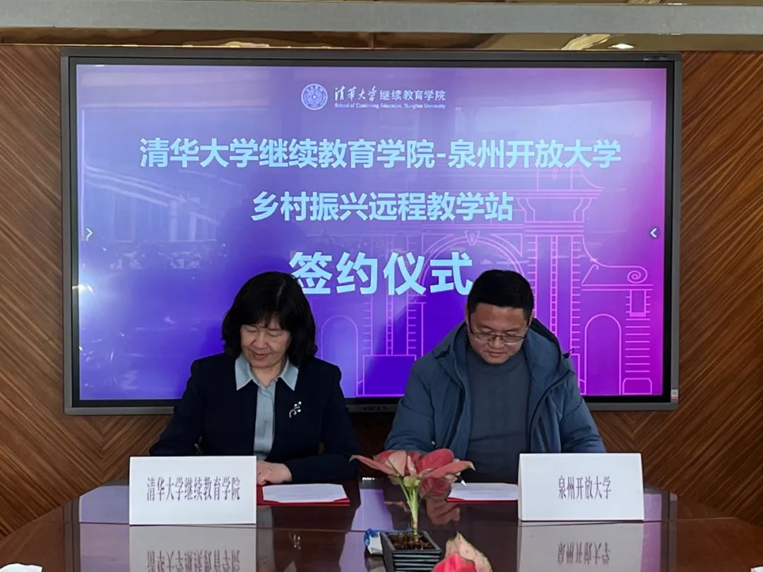 授牌结束后,清华大学继续教育学院与泉州开放大学举行远程教学站共建签约仪式。参加签约仪式的有清华大学继续教育学院党委副书记、纪委书记张文雪,乡村振兴办公室主任朱维博,徐香兰老师及泉州开放大学书记、校长陈向荣,副校长林春成,继续教育处主任傅伶澜等。