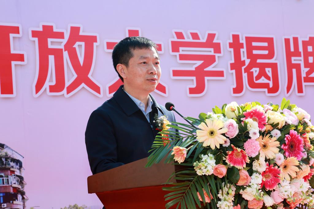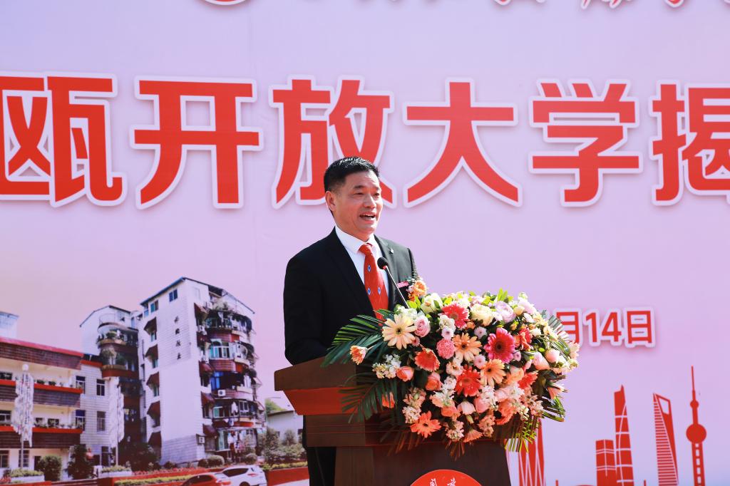 张年雄在致辞中对学校43年来取得的办学成绩给予了充分肯定。他指出,建瓯开放大学揭牌既是建瓯教育事业发展史上的一件喜事,也是开放大学转型发展进程中的一件大事。建瓯开放大学坚持学历教育、社会培训、终身教育“三轮驱动”,是建瓯充分发挥文化优势,锚定“千年建州·理学名城”发展定位,致力于办好人民满意教育的具体举措之一。面向未来,希望建瓯开放大学适应时代需求,办出特色;创新教学模式,提高质量;拓展教育内涵,创建品牌。建瓯市委市政府将一如既往地为建瓯开放大学深化改革、建设发展提供充足条件和坚强保障。