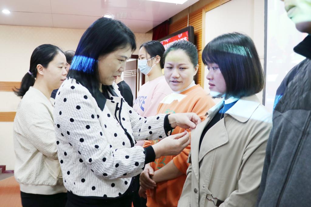 市总工会党组成员、副主席冯荣珍为学生佩戴校徽