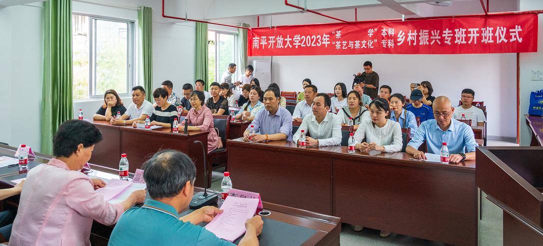 4月21日,南平开放大学举办2023年茶学本科、茶艺与茶文化专科乡村振兴专班开班仪式。南平市乡村振兴促进会顾问柳贵清、副会长温秀美、南平开放大学党总支书记(校长)林忠炎、建阳区漳墩镇人大主席梅水和、建阳区白茶协会会长李泉弟、福建开放大学文经学院博士吴全金出席仪式。南平开放大学教师及“茶”专业师生代表近40人参加开班仪式。