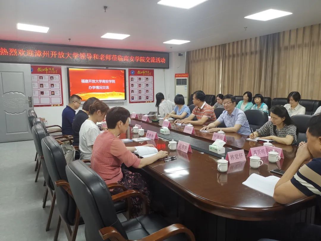 次日上午,学习组一行到福建开放大学南安学院学习交流。南安学院院长尤春生详细介绍了办学情况、经验、特色和成效。