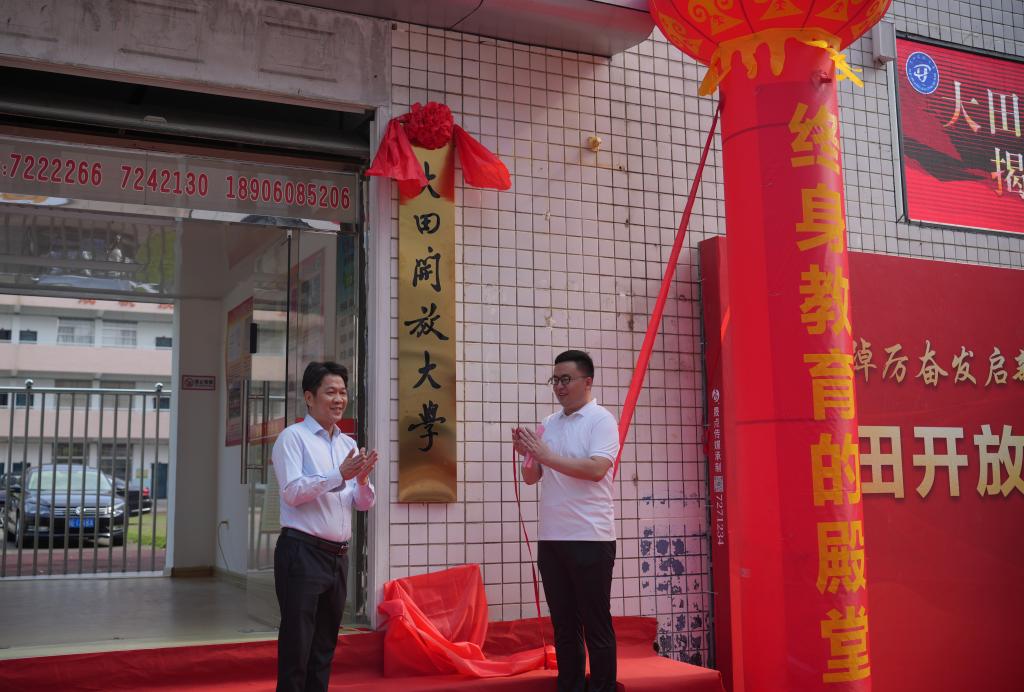 仪式上,福建开放大学校长吴国荣、大田县委常委张庚豫共同为大田开放大学揭牌。