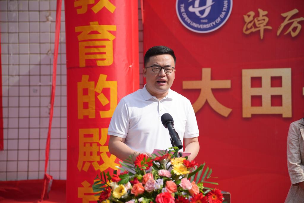 吴国荣代表福建开放大学致辞。他指出,大田开放大学揭牌既是大田教育事业发展史上的一件喜事,也是全省开放大学转型发展进程中的一件大事。他希望大田开放大学立足新发展阶段,以服务当地经济社会发展为己任,不断探索学校发展的理论创新、模式创新、技术创新、实践创新,真正办出内涵、办出品质、办出风格。要坚持协调促发展、开放逼改革、共享创共赢,统筹协调好学历继续教育、非学历教育和终身学习支持服务“三轮驱动”,牢牢把握学历教育新抓手、社区教育新渠道、社会培训新品牌、老年教育新亮点、职业教育新支撑“五个定位”,在构建服务全民终身学习的教育体系中,发挥开放大学应有的作用。