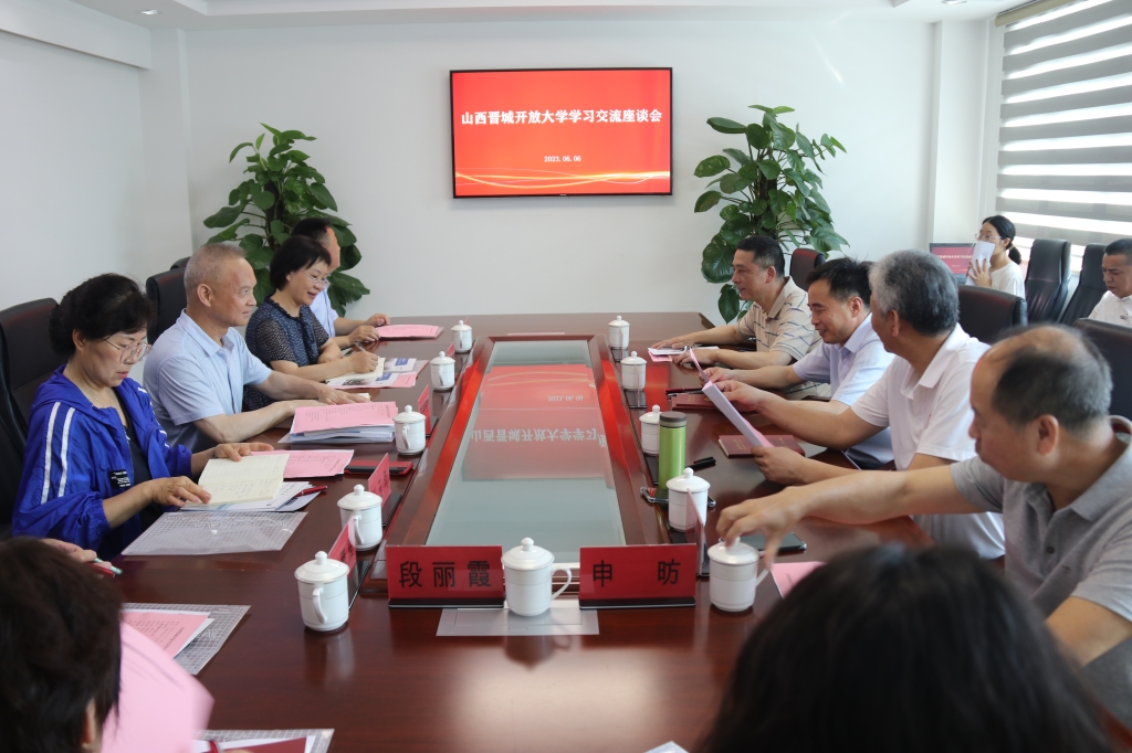 6月7日,山西晋城开放大学副校长车军社、张玉凤、娄俊丽带领办公室、教务处、教研室、社区培训办公室等部门负责人一行到宁德开放大学交流。宁德开放大学党委书记、校长叶祖庚,副校长林承毅、王晓飚,党委副书记李健平等参加交流座谈会。