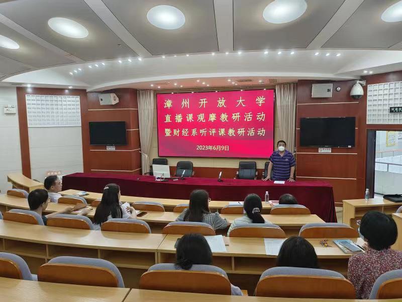6月9日下午,漳州开放大学财经系教师齐聚一堂,共同开展了“直播课观摩教研活动暨财经系听评课教研活动”。副校长吕峰鹏、教务处有关负责人及部分青年教师一同参加活动。
