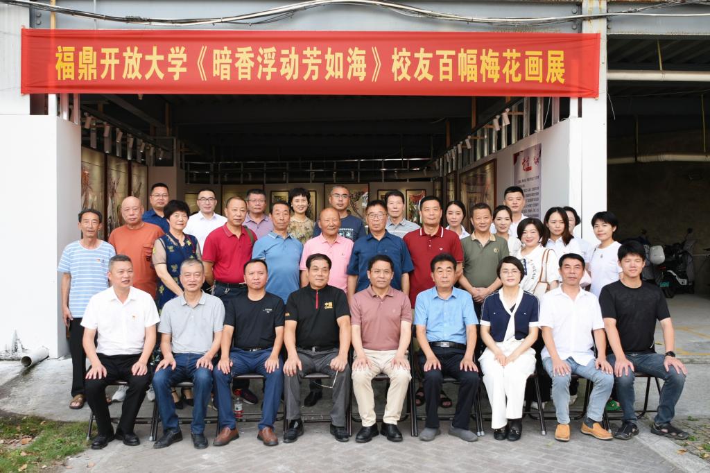 本次画展,以学校校友、旅居澳大利亚资深书画创作研究员谢济光和中国美术家协会会员、宁德市美术家协会副主席林伟两位老师的作品为主,展出百余幅梅花画作,呈现红梅不畏严寒迎风绽放的高尚品格,寓意中国共产党走过的百年艰辛历程及福鼎开放大学的发展过程。