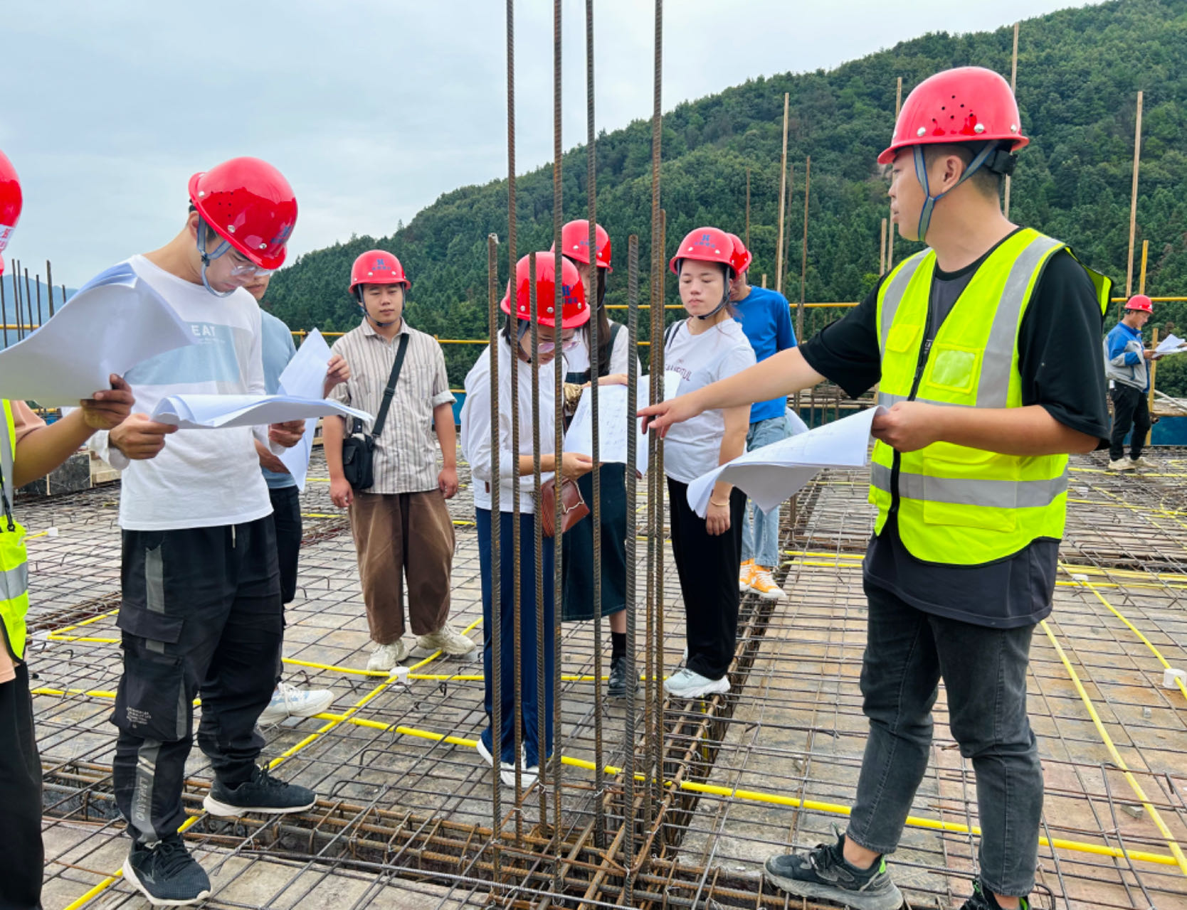 闽东地产开发有限公司工程部负责人向学生介绍宁德市市级城市公益性公墓项目概况,施工方介绍施工组织设计,监理方介绍监理工作内容及监理依据。校内专业指导教师龚振峰还带领学生到现场学习测量放样。