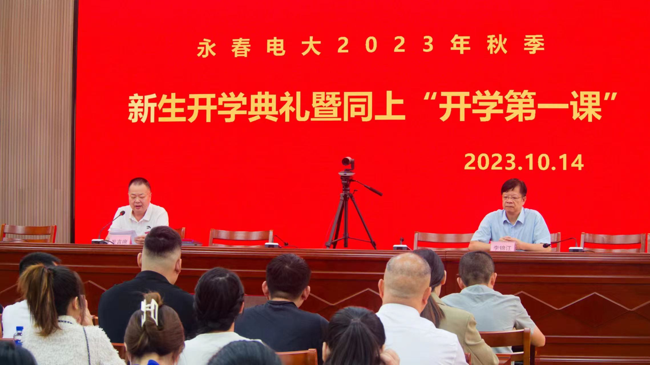 10月14日上午,福建开放大学举办2023年秋季新生开学典礼暨同上“开学第一课”,福建开放大学永春学院在县教育中心六楼会议室设立分会场收看直播,并在分会场举办福建开放大学永春学院2023年秋季开学典礼暨同上“开学第一课”。永春县教育局三级调研员李锦江出席活动,学院全体教职工及2023年秋季新生代表参加。