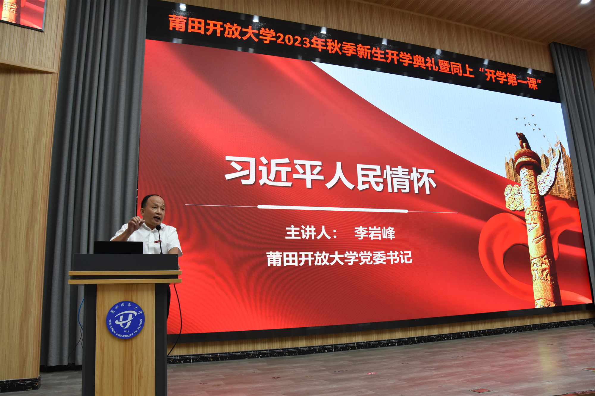 莆田开放大学党委书记李岩峰以《习近平人民情怀》为题,为新生上思政教育微党课。他希望同学们自强励学,获得知识技能的提升;惟实励新,培养就业创业的能力;修身立德,磨练做人做事的本领;坚定信念,增强价值观念的认同,努力成长为堪当中华民族伟大复兴重任的时代新人。
