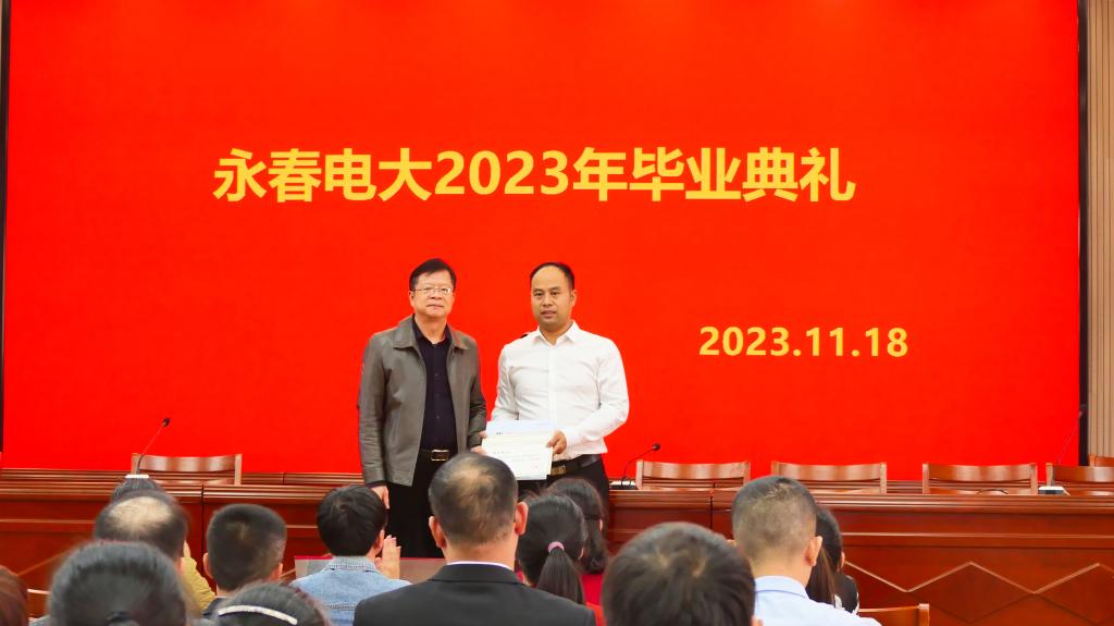 11月18日下午,福建开放大学举办2023年毕业典礼,福建开放大学永春学院在永春县教育中心六楼会议室设立分会场收看直播,并在分会场举办永春学院2023年毕业典礼。永春县教育局三级调研员李锦江出席活动,2023年毕业生代表和学院全体教职工参加。