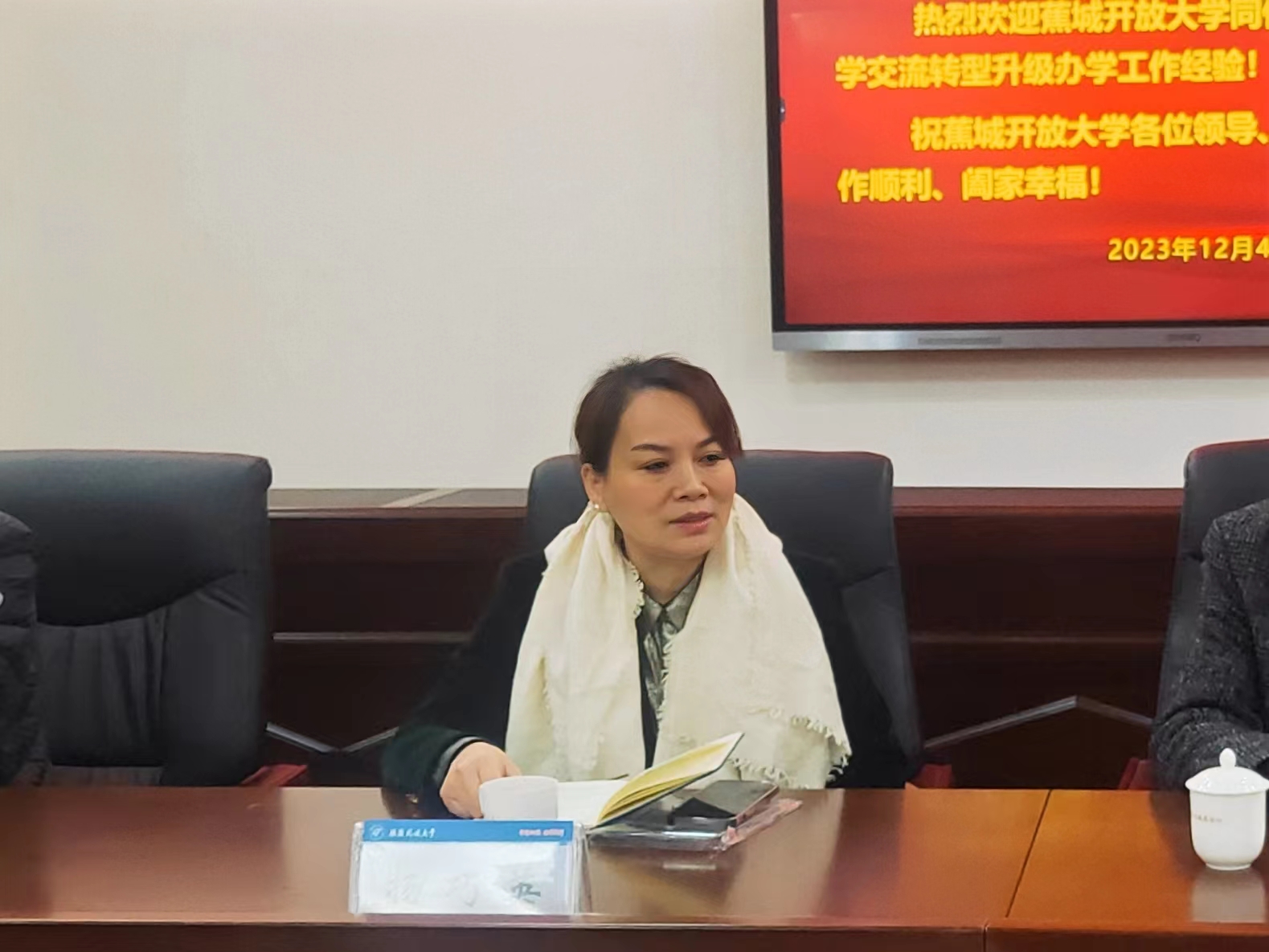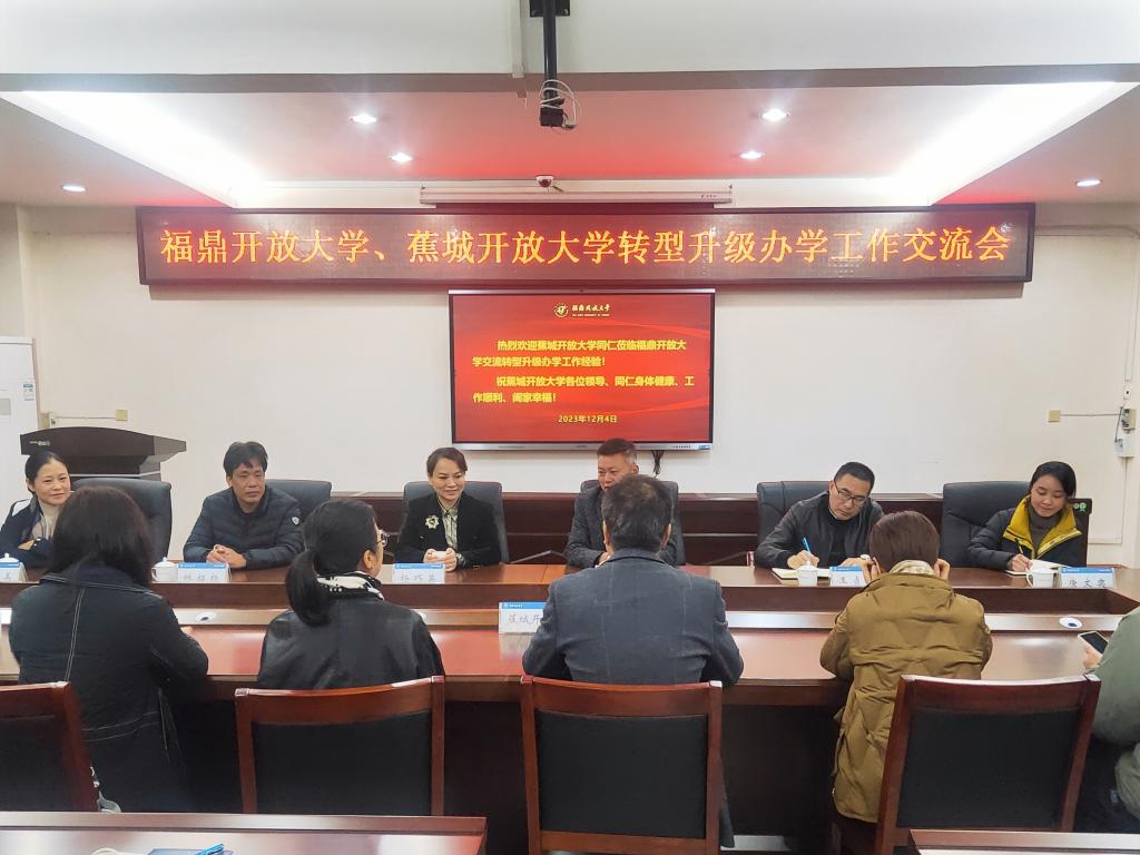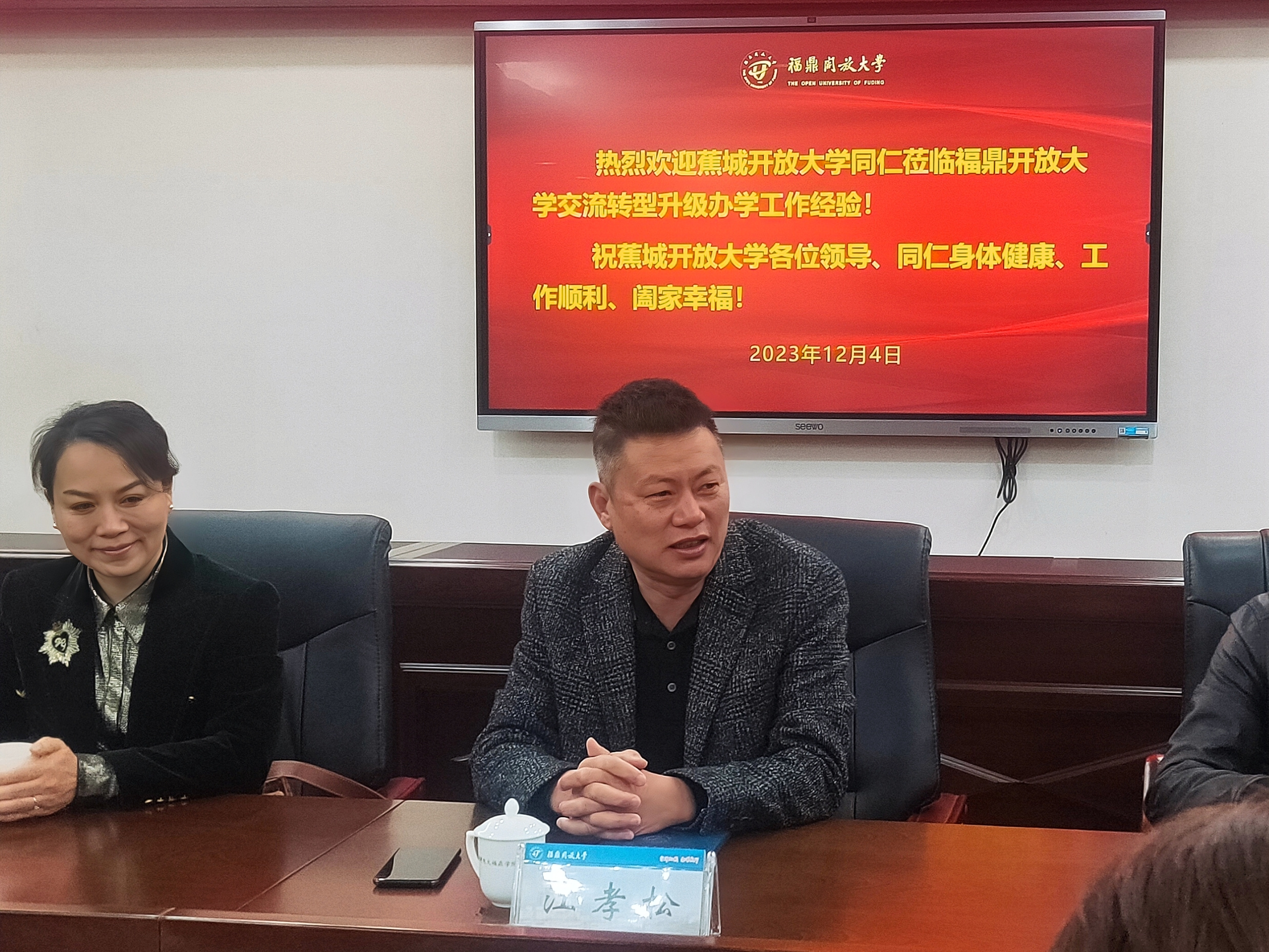12月4日,蕉城开放大学校长杨巧英带领全校教师到福鼎开放大学就办学转型升级工作进行交流学习,福鼎开放大学行政班子成员出席交流会。