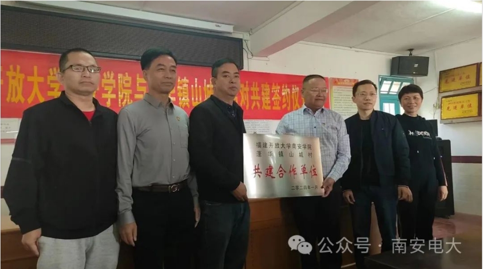 为深入贯彻落实中央、福建省和泉州市关于深化拓展新时代文明实践中心(所、站)建设工作部署,进一步拓展新时代文明实践阵地建设,促进文明单位与新时代文明实践阵地结对共建,切实以文明创建推动结对共建工作走深走实、推动新时代文明实践工作提质增效,充分发挥福建开放大学南安学院作为泉州市文明单位辐射引领作用,1月16日上午,福建开放大学南安学院与蓬华镇山城村新时代文明实践站开展结对共建活动,并举行结对共建签约仪式。蓬华镇党委书记潘志卿、镇长黄东坡、副书记伍伯稳,南安学院全体老师以及山城村两委参加活动。