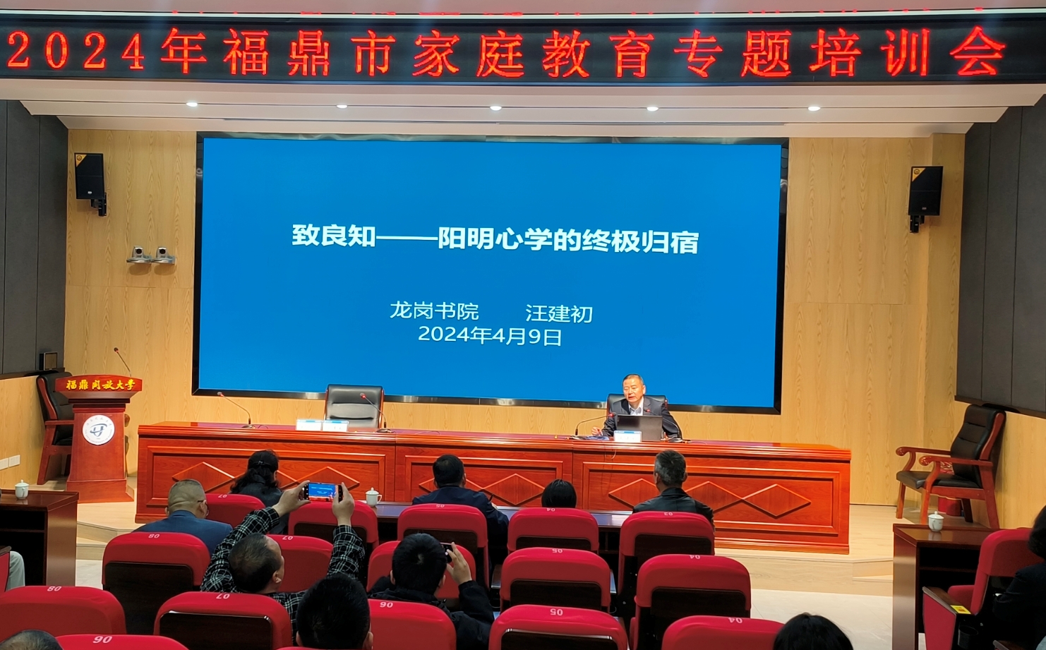 本次会议还特邀贵州省委党校原副校长、贵州行政学院原副院长、贵州学院原副院长汪建初为大家进行家庭教育专题培训,课题为《致良知——阳明心学的终极归宿》。他从阳明心学角度围绕“致”的动力、“良”的思维、“知”的境界、“行”的习惯和“志”的建立等五个方面阐述人在成长和发展历程中的“良知”问题,语言通俗、富有感染力,内容生动、富有深度和广度,见解睿智、富有哲理和思想,让人耳目一新、受益匪浅。