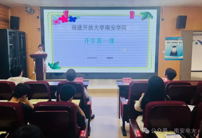 南安学院组织开展了新生入学教育。吴碧珠老师讲授了《国家开放大学学习指南》,详细介绍了参与开大学习的方式方法,指导新生如何顺利完成作业和期末考试,勉励大家爱学校、爱学习,在南安学院这所没有围墙的大学勇敢逐梦。