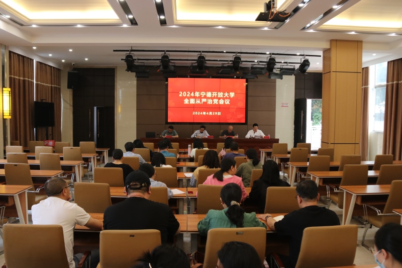 4月29日,宁德开放大学组织召开2024年度全面从严治党工作会议,宁德开放大学党委书记、校长叶祖庚,副校长王晓飚及全体党员参加会议,派驻市教育局纪检监察组四级调研员王致茂列会指导,党委副书记余水淮主持会议。