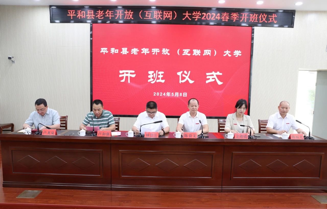 5月8日,漳州开放大学副校长陈毅文率相关部门负责人赴平和开放大学开展老年教育调研并参加平和县老年开放(互联网)大学2024年春季开班仪式。平和县副县长林贵良出席活动,平和县教育局党委书记、局长卢和强主持开班仪式,县委教育局、人社局、民政局、老干部局等有关部门领导、负责人,平和开放大学、平和机关干校全体教职工,以及平和县老年开放(互联网)大学各专业老师和全体学员参加开班仪式。
