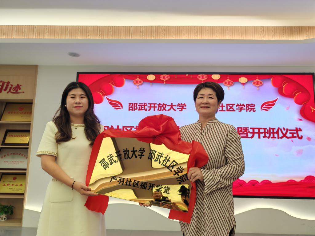 5月15日,邵武开放大学、邵武社区学院严羽社区“福开学堂”授牌暨开班仪式在邵武通泰街道严羽社区举行。邵武通泰街道党工委书记黄庆平、邵武开放大学校长黄香喜、副校长聂良春,严羽社区“青墨”书画协会、“别样红”歌舞队的代表以及社区全体干部40余人参加了授牌仪式。