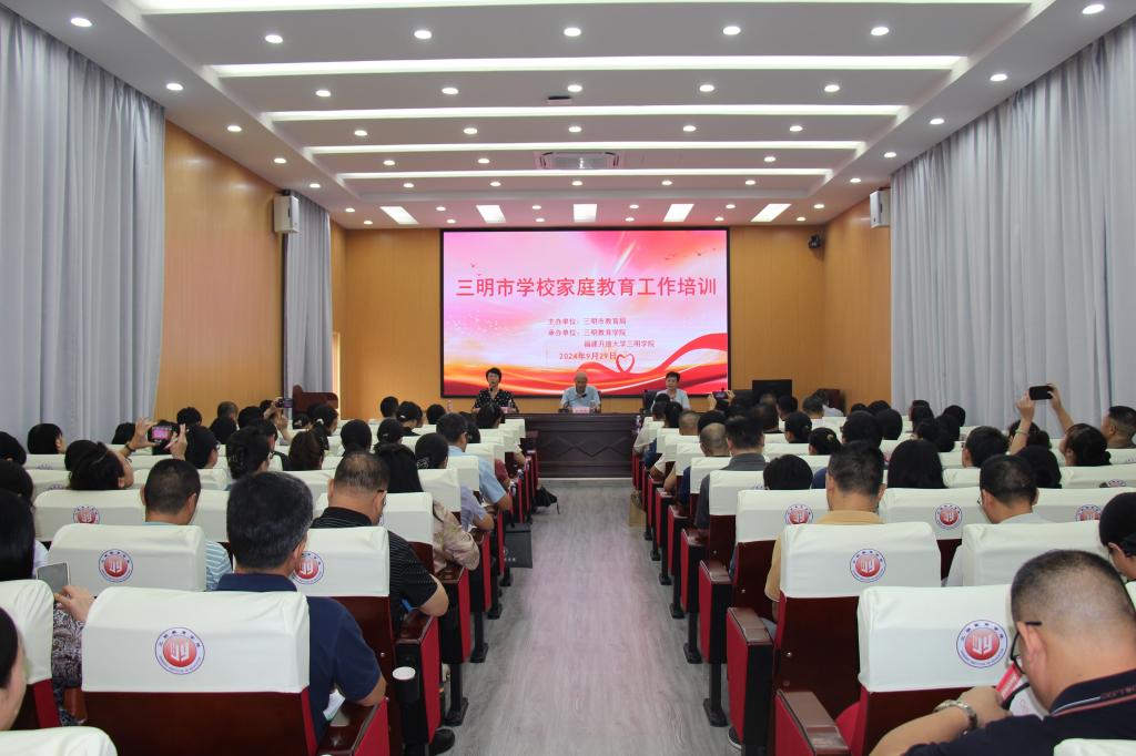 为贯彻落实习近平总书记关于注重家庭家教家风建设的重要论述,推进三明市学校家庭教育工作有力有序开展,9月29日至30日,全市学校家庭教育工作培训在三明教育学院举办。此次活动由三明市教育局主办,三明教育学院、福建开放大学三明学院承办。三明市教育局四级调研员余百火出席开班仪式并讲话。