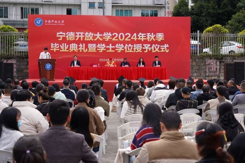 11月30日下午,宁德开放大学举行2024年秋季开放教育学生毕业典礼暨学士学位授予仪式。宁德开放大学党委书记、校长叶祖庚,党委委员、副校长王晓飚出席,典礼由党委副书记余水淮主持。本期毕业生共711名,27人在2024年春季学期获得学士学位证书,学士学位获取人数位居全省开放大学前列。