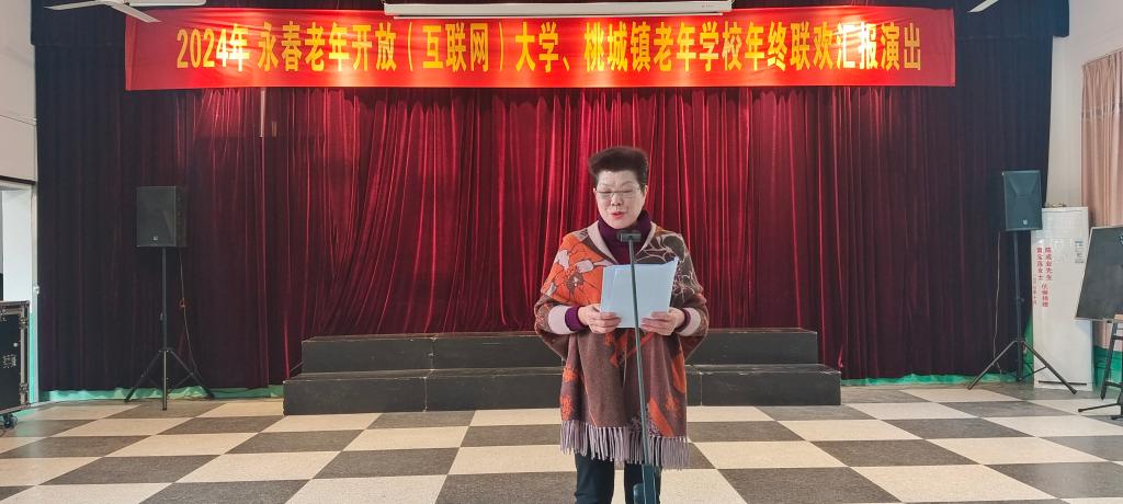 12月27日上午,永春老年开放(互联网)大学、桃城镇老年学校在桃城镇老年学校举办2024年年终联欢汇报演出活动。永春县老体协,桃城镇人民政府,福建开放大学永春学院相关负责人出席活动并同现场300多名桃城镇老年学校师生共同观看了演出。演出前,桃城镇老年学校校长林丽丽通报学校年度工作情况。