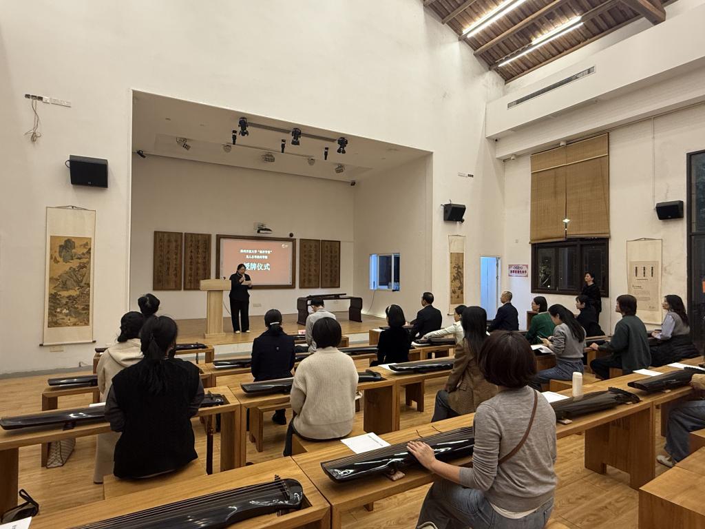 为深入贯彻落实党的二十大、二十届三中全会和全国教育大会精神, 聚焦“建设全民终身学习的学习型社会、学习型大国”要求,推动《福建省教育厅等十部门关于进一步加快发展社区教育的实施意见》等政策文件的落地实施,3月21日晚,漳州开放大学在龙人古琴漳州琴馆挂牌成立漳州开放大学“福开学堂”(市民学习体验基地)。漳州开放大学党委书记、校长詹志灵出席活动并授牌,龙人古琴总经理谢宗煌接牌,漳州开放大学副校长陈毅文致辞,学校相关部门负责人、工作人员以及“福开学堂”古琴班的首批学员参加活动。古琴非遗传承人邹晓慧馆长现场演奏古琴名曲并为大家授课。 “福开学堂”以“优秀传统文化”为载体,推动社区教育、老年教育向基层延伸, 打造居民“家门口的文化课堂”。
