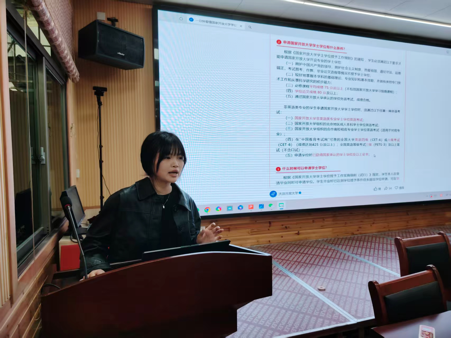 随后,教务处程敏老师作导学培训。她向新生们介绍了开放教育学习模式、学习平台运用、思政课学习以及如何获取学位证书等具体内容。通过现场演示,帮助新生尽快熟悉和掌握开放教育学习方法。