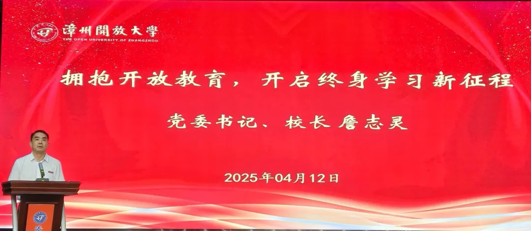 4月12日上午,漳州开放大学组织2025年春季新生在丹霞堂参加全省办学体系双向视频开放教育新生开学典礼暨开学第一课。校党委书记、校长詹志灵,党委委员、副校长吕峰鹏,党委委员、副校长陈毅文,各科室负责人及教师代表出席活动。