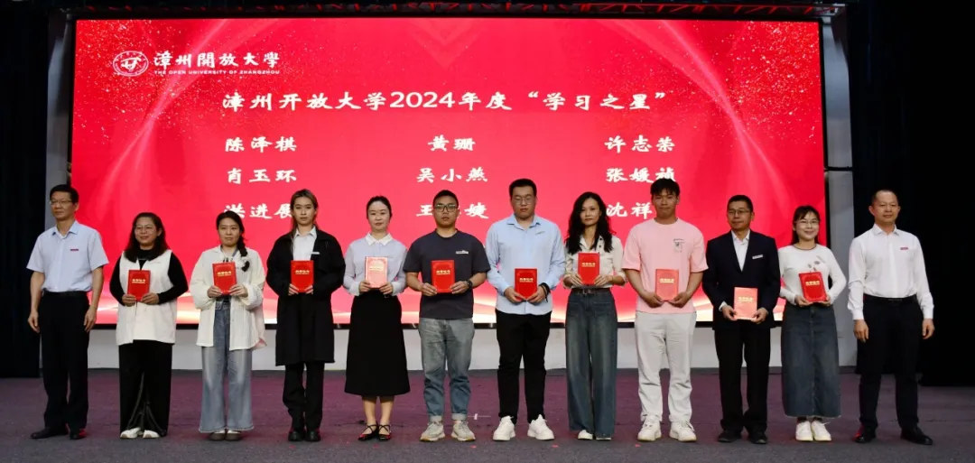 开学典礼在庄严的国歌声中拉开帷幕。活动现场,学校举行了优秀学生表彰仪式。校领导分别为国家开放大学奖学金获奖学生、漳州开放大学2024年度学习之星获奖学生颁奖。