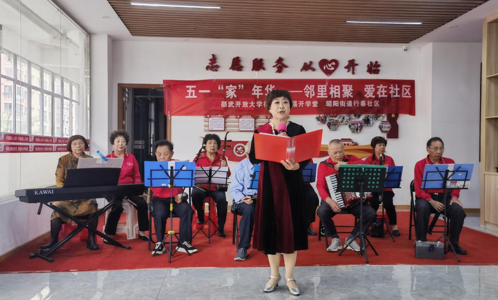 4月30日上午,邵武开放大学行春社区福开学堂举行庆五一文艺汇演。本次活动以“五一‘家’年华:邻里相聚,爱在社区”为主题。福开学堂学员、辖区居民等60余人欢聚一堂。