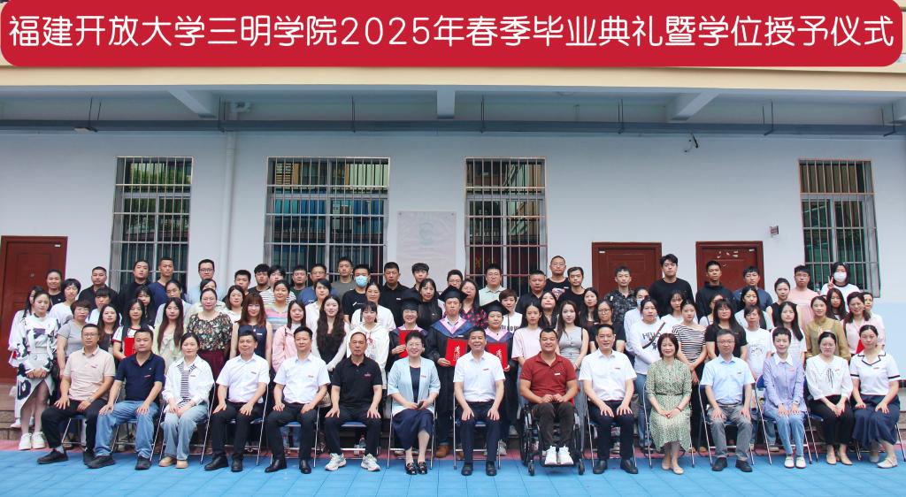 毕业骊歌起,青春再启航。为进一步深化“12335”成人大学生思政工作,加强毕业生爱校荣校教育,增强学生责任感、自豪感和归属感,5月25日上午,福建开放大学三明学院举行2025年春季开放教育毕业典礼暨学位授予仪式,全体教职工及2025年毕业生共计130余人参加典礼,院党委副书记、院长林启福出席典礼,典礼由院党委委员、副院长张莲珠主持。