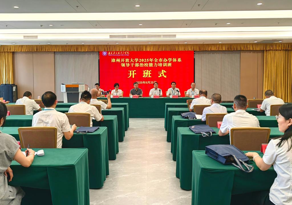 为深入学习贯彻落实习近平总书记在福建考察时的重要讲话精神,持续推进深入贯彻中央八项规定精神学习教育,进一步提升漳州市办学体系领导干部治校能力,8月25日至27日,漳州开放大学在福建谷文昌干部学院举办2025年全市办学体系领导干部治校能力培训班。学校领导、中心主任以上干部、各县区开(电)大负责人及相关工作人员参加培训。福建开放大学党委副书记马成斌,中共漳州市委党校、福建谷文昌干部学院副校(院)长林叶环出席开班式。
