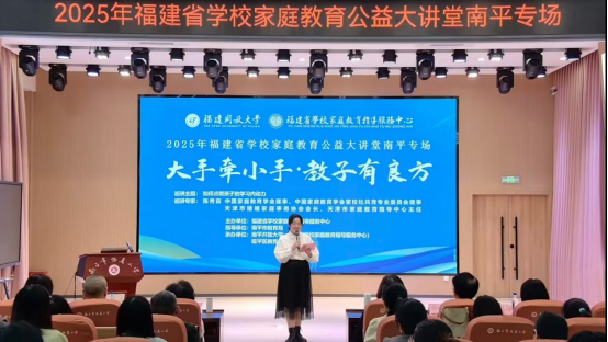 10月25日上午,由福建省学校家庭教育指导服务中心主办,南平市教育局指导,南平开放大学(南平市学校家庭教育指导服务中心)、延平区教育局承办的2025年福建省学校家庭教育公益大讲堂(南平专场)活动在南平市扬真小学顺利举办。