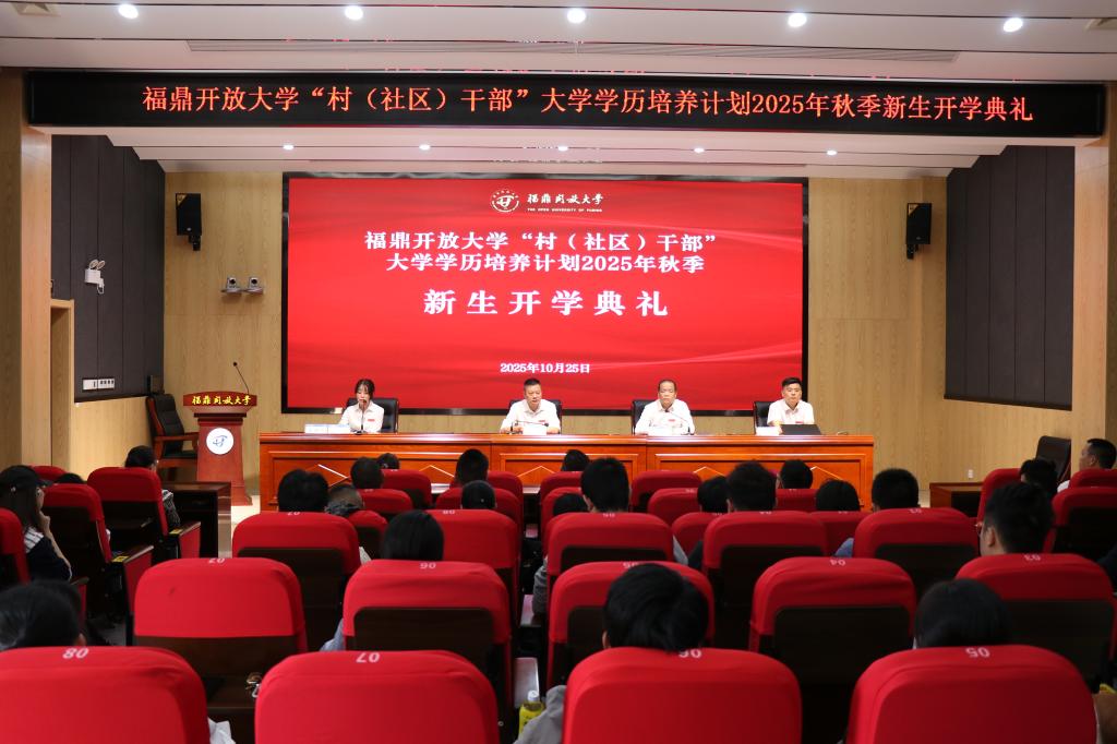金桂飘香,秋光作序。10月25日上午,福鼎开放大学举行“村(社区)干部”大学学历培养计划2025年秋季新生开学典礼。福鼎开放大学校领导班子、新生班主任及2025秋季全体新生出席开学典礼。典礼由副校长唐文奕主持。