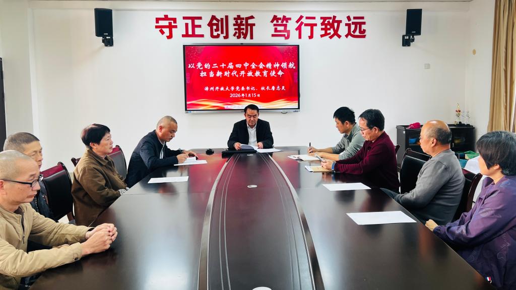 1月15日下午,漳州开放大学党委书记、校长詹志灵赴长泰开放大学开展党的二十届四中全会精神及省委十一届九次全会、市委十二届十次全会精神宣讲并开展工作调研,为基层开放大学发展精准赋能。长泰开放大学全体教职工参加宣讲会。