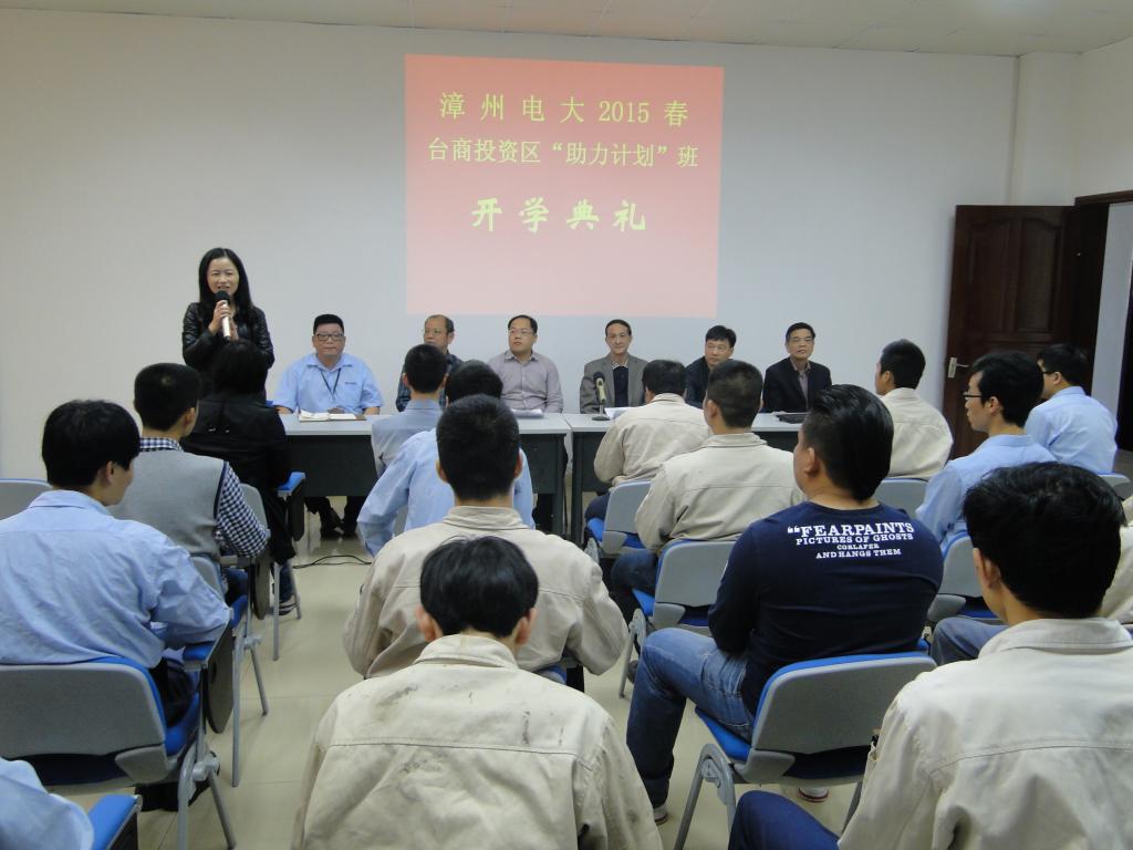 4月15日上午,漳州电大在台商投资区凯景钢铁有限公司举行2015春台商投资区“助力计划”班开学典礼。校党委书记曾胜利、校长许友明、副校长陆志洪,台商投资区管委会副主任何华成、陈晓明,副处级调研员游伟才等领导出席了典礼。