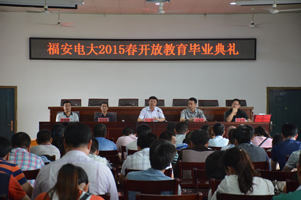 6月6日上午,福安电大召开了2015年春季开放教育毕业典礼。电大领导班子、处室主任、毕业班教师及全体毕业生共计270人参加了毕业典礼。副院长吴毓荣主持典礼。