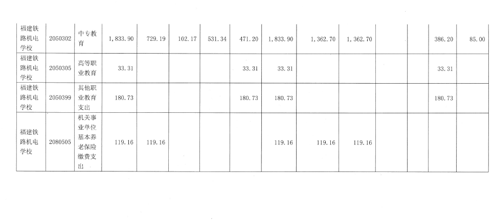 (一)中专教育(2050302科目)1362.7万元。主要用于福建铁路机电学校日常公用、人员经费、对家庭个人补助等支出。