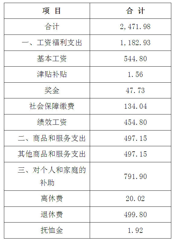 2015年度公共财政预算拨款支出2471.98万元,主要支出项目(按科目分类统计)包括: