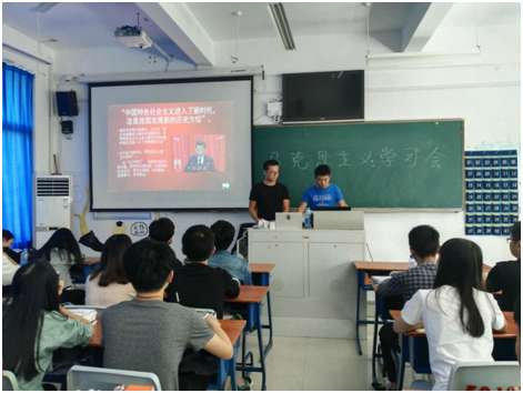 为了庆祝党的十九大胜利召开,唱响社会主义核心价值观的主旋律,10月25日中午,职业学院青马社团在博厚楼102举办了马克思主义学习会,共有30名青马社成员参加。