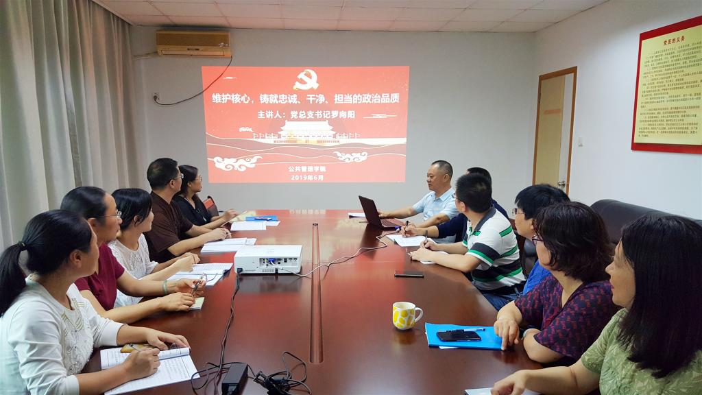 为深入学习贯彻习近平新时代中国特色社会主义思想和党的十九大精神,根据学校党委的部署,6月24日下午,公共管理学院党总支在左海校区综合楼三楼思政教研室开展“坚决维护核心、践行初心使命”的主题党日活动,教师党支部、党政党支部全体党员参加活动。