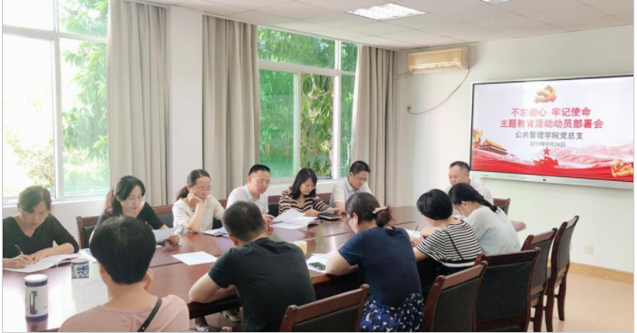 9月24日上午,公共管理学院党总支在左海校区思政教研室召开“不忘初心、牢记使命”主题教育动员部署会。学院党总支书记罗向阳主持会议,学院全体党员参加会议。
