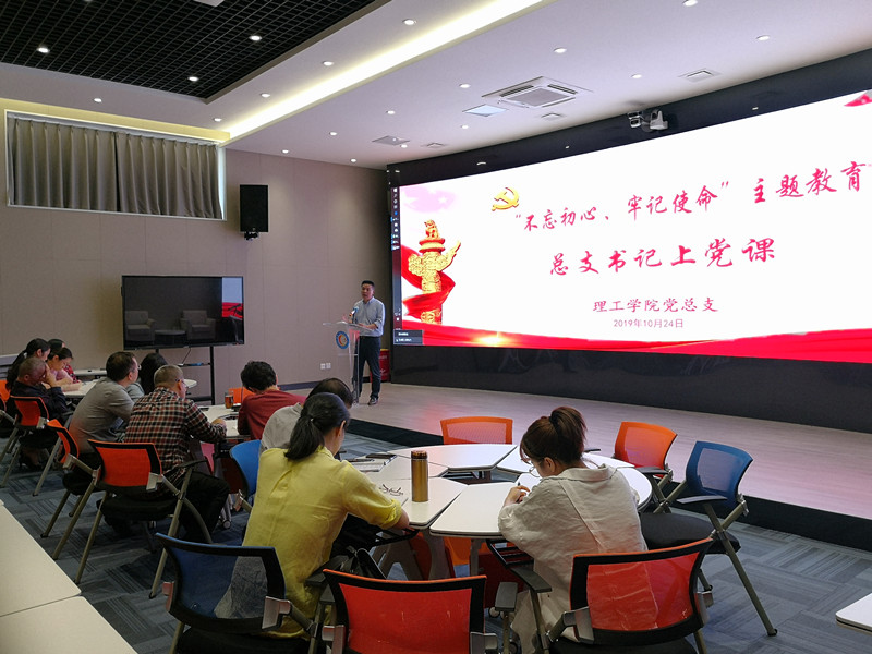 理工学院党总支书记雷乃旺为全体党员上了一堂生动的专题党课,党课题为《用实干担当践行立德树人》。雷乃旺结合新中国成立70周年阅兵式和中美贸易之争,阐述了新中国成立70年来,中国共产党领导全国各族人民取得了举世瞩目的伟大成就,令中华儿女倍感自豪和骄傲,使我们更加坚信党的领导,更加坚定中国特色社会主义道路。他要求全体党员要按照 “守初心、担使命、找差距、抓落实”的总要求,不忘教育初心和使命,结合调研成果,用实际行动践行立德树人根本任务,并对下一阶段开展主题教育提出三点要求:一要加强学习,提高政治站位;二要回归教育本源,践行立德树人根本任务,强化质量和服务意识;三要结合调研,落实整改,推动学校转型升级。