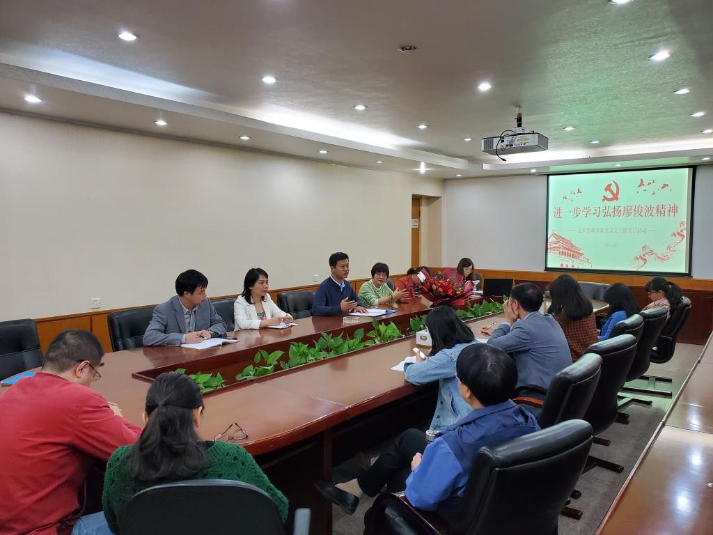 为进一步学习弘扬廖俊波精神,11月24日下午,公共管理学院党总支在左海校区综合楼三楼会议室,开展“进一步学习弘扬廖俊波精神”主题党日活动。学院党总支书记、院长张海主持,全体教职工参加。
