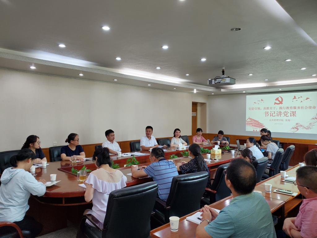 为进一步推进学习贯彻习近平总书记在庆祝中国共产党成立100周年大会上的重要讲话精神,引导教职工深刻领会和把握讲话精神,切实把思想和行动统一到讲话精神上来。根据学校党委部署要求,7月6日下午,公共管理学院党支部开展支部书记讲党课活动,总支书记张海作了题为《党建引领,真抓实干,践行教育服务社会使命》的“七一”专题党课。全院教职工参加活动。