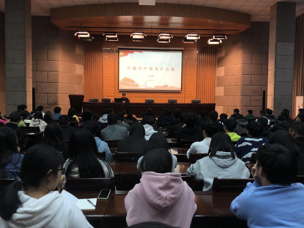吴宁晖书记以“中国共产党为什么能”为主题,围绕“科学的理论指导”“坚定的理想信念”“强大的组织优势”“坚实的群众基础”“彻底的自我革命”五个方面展开,通过对中国共产党党史、现状和发展趋势的详细讲解,让同学们对党的性质、宗旨、原则及党领导中国人民所取得的伟大成就有了初步了解,着重讲述树立正确入党动机的重要性,鼓励新生积极向党组织靠拢,坚定理想信念,接受党组织的培养教育及考察,争取早日成为合格党员。