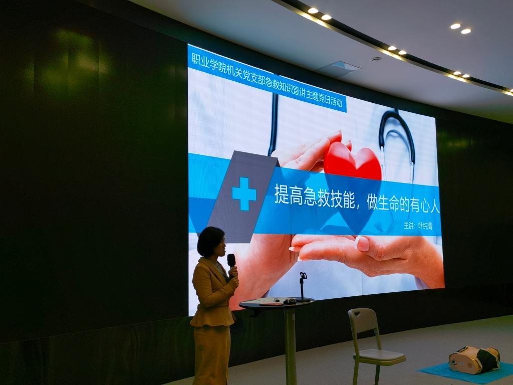 11月23日下午,职业学院机关党支部开展“提高急救技能,做生命的有心人”为主题的急救知识技能宣讲党日活动,旨在进一步向广大学生普及急救知识,提高大家在突发事件中的自救互救能力。活动由职业学院机关党支部党员叶纯菁主讲,支部10名党员和21级部分班级学生参加了活动。