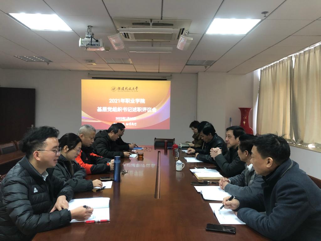 根据学校党委的要求,1月13日上午9:30,职业学院党总支在明德楼902会议室召开基层党支部书记抓党建述职评议会。会议由党总支书记吴宁晖主持,学院全体党总支委员和支部书记参加会议。