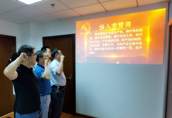 最后,支部书记带领全体党员面向党旗庄严宣誓,重温入党誓词,再次感受当初加入中国共产党的激动情怀,更加坚定了永远跟党走的决心。